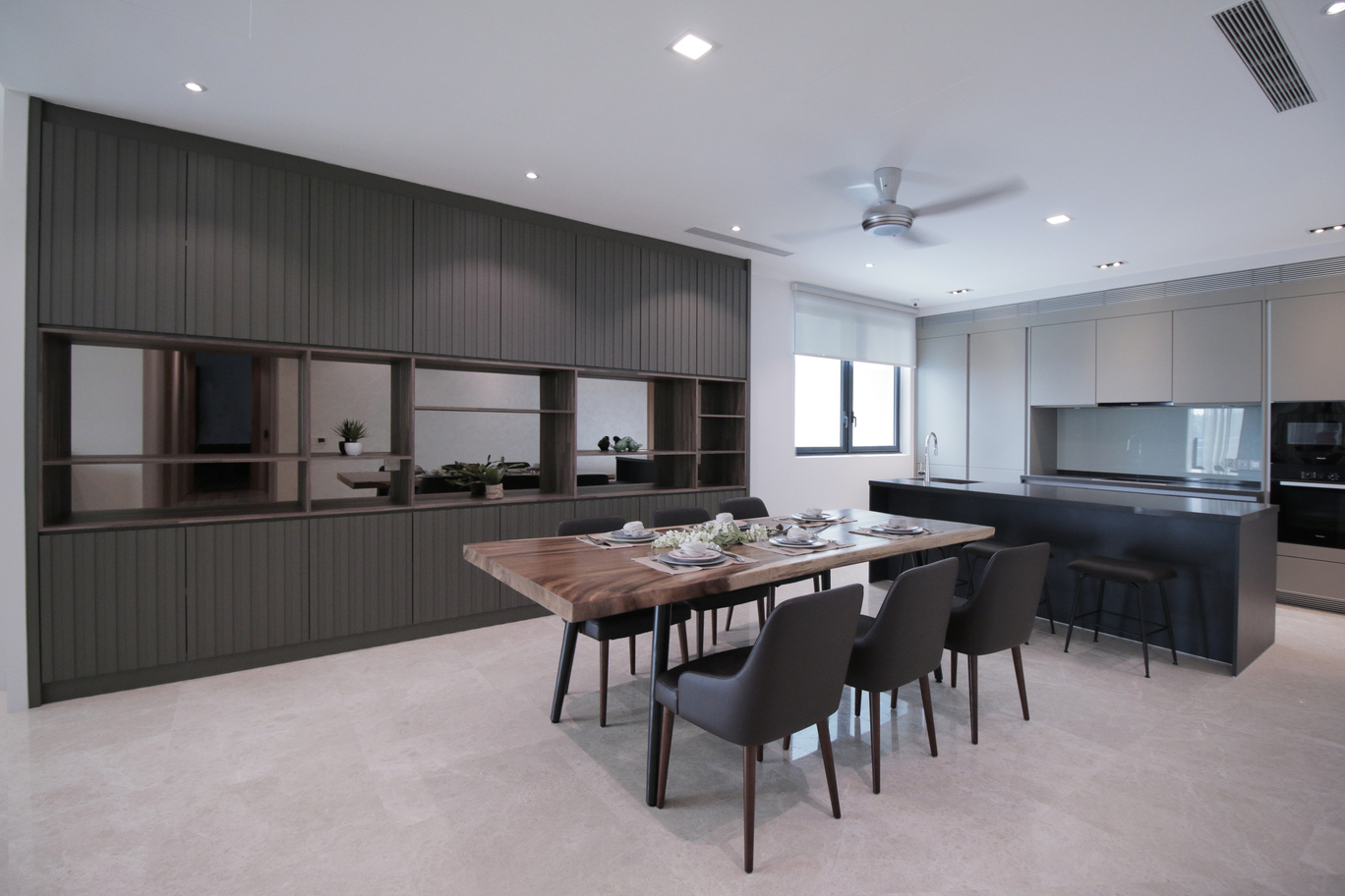 Located in the prestigious Damansara City Residensi, this 2,702 sqft home redefines contemporary luxury through refined craftsmanship and thoughtful detailing. From elegant feature walls to bespoke cabinetry and decorative lighting, every element was curated to reflect understated sophistication.